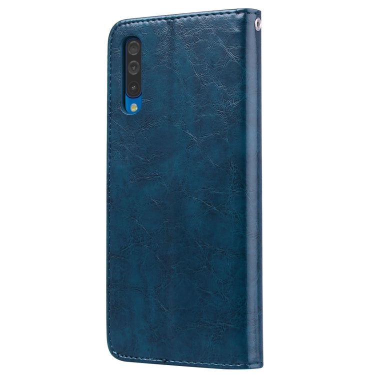Estuche de Cuero Galaxy A50 Tapa Horizontal Textura Cera Soporte Ranuras Billetera (Azul)