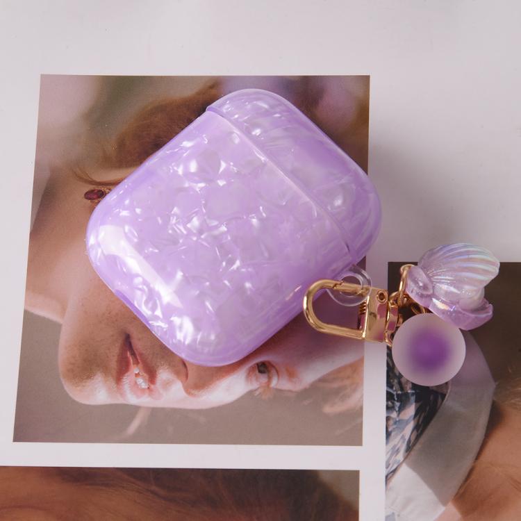 Estuche para auriculares AirPods 1/2 con textura de perla y hebilla colgante (morado claro)
