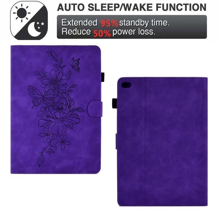 Estuche para Tableta Cuero En Relieve Peony Butterfly para iPad Mini 5 / 4 / 3 / 2 / 1 (Púrpura)