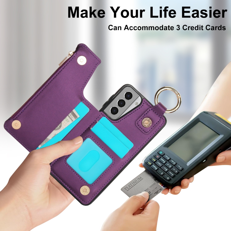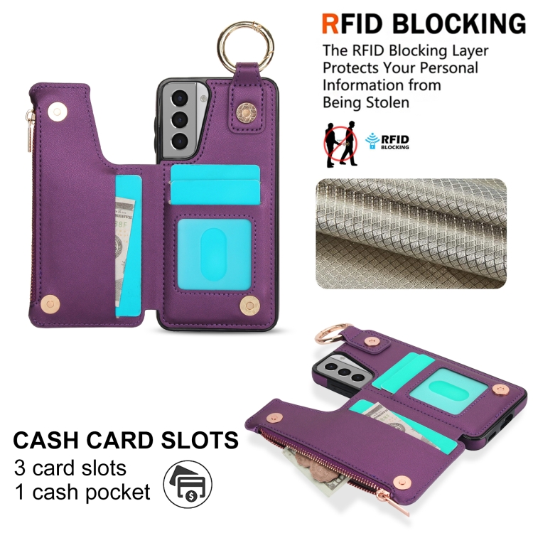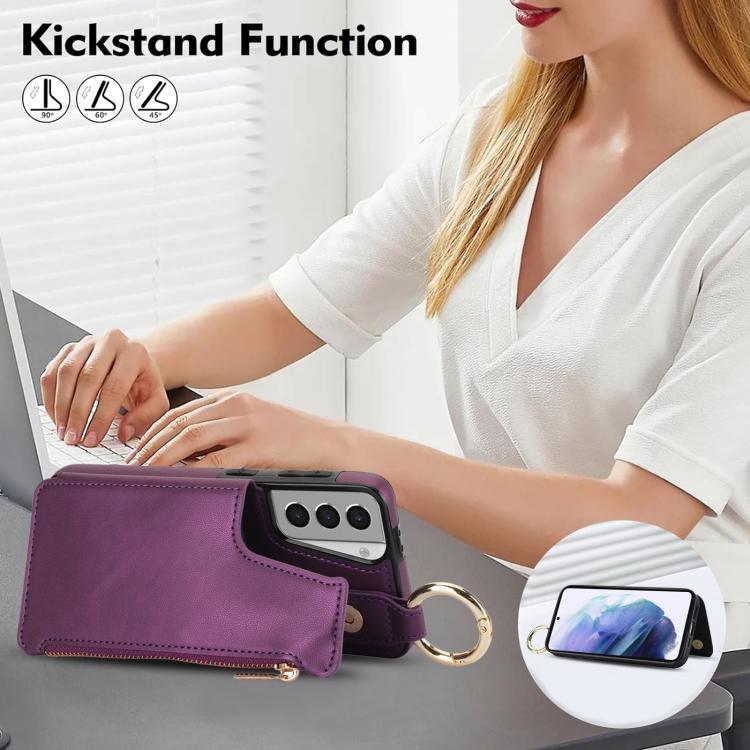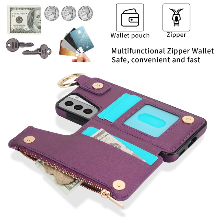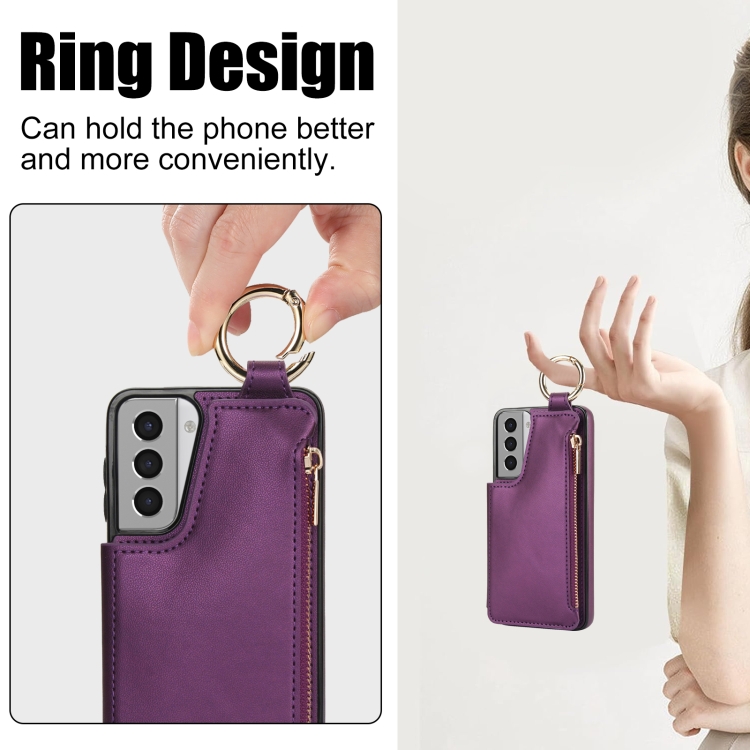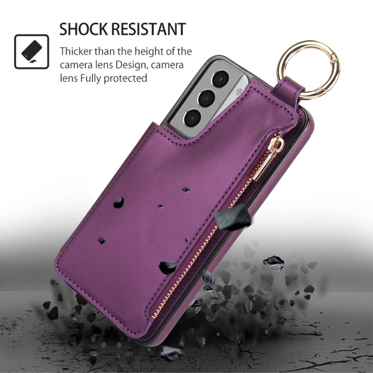 Estuche para Teléfono Samsung Galaxy S21+ 5G Rfld con Cremallera y Anillo de Doble Hebilla Antirrobo (Morado Oscuro)