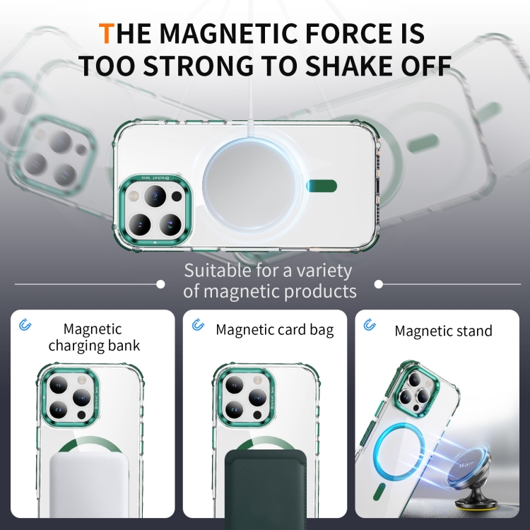 Estuche para Teléfono Rainbow con Soporte para Lente Magsafe para iPhone 16 Pro Max (Verde)