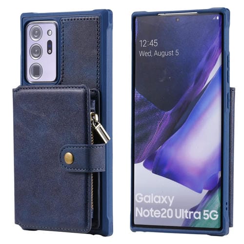 Estuche Protector Samsung Galaxy Note20 Ultra con Cremallera, Ranuras para Tarjetas, Soporte y Función Billetera (Azul)