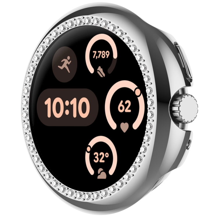 Estuche protector de PC con revestimiento de diamante galvanizado para Google Pixel Watch 3 de 45 mm con cobertura media (plateado)