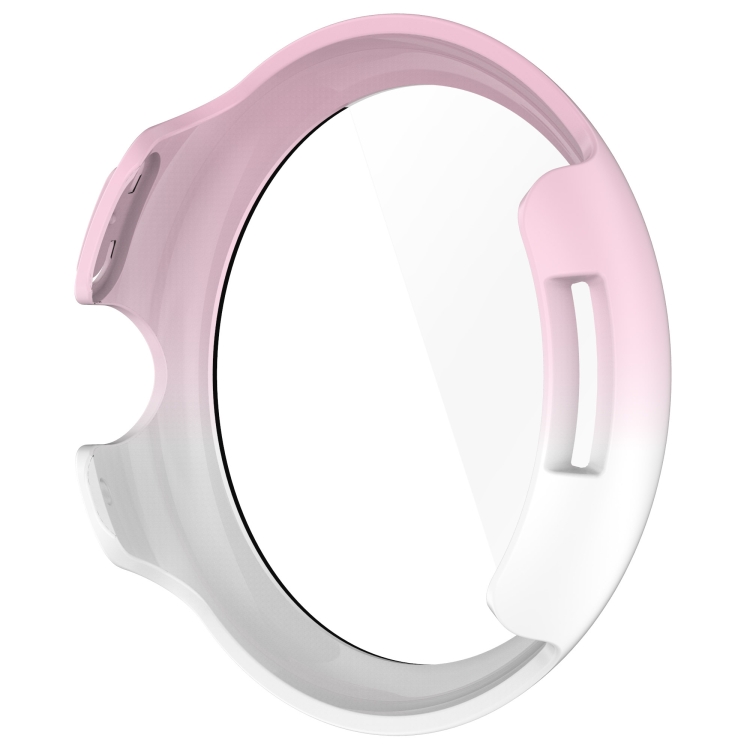 Estuche protector para reloj integrado con película templada y PC para Google Pixel Watch 3 de 45 mm (rosa y blanco)