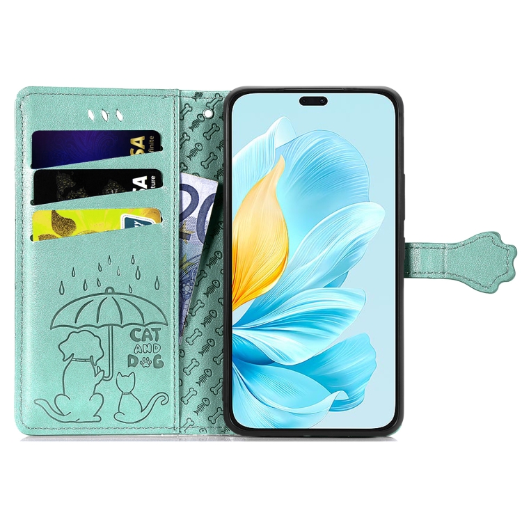 Funda de Cuero For Honor 200 Lite con Relieve para Perros y Gatos (Verde)
