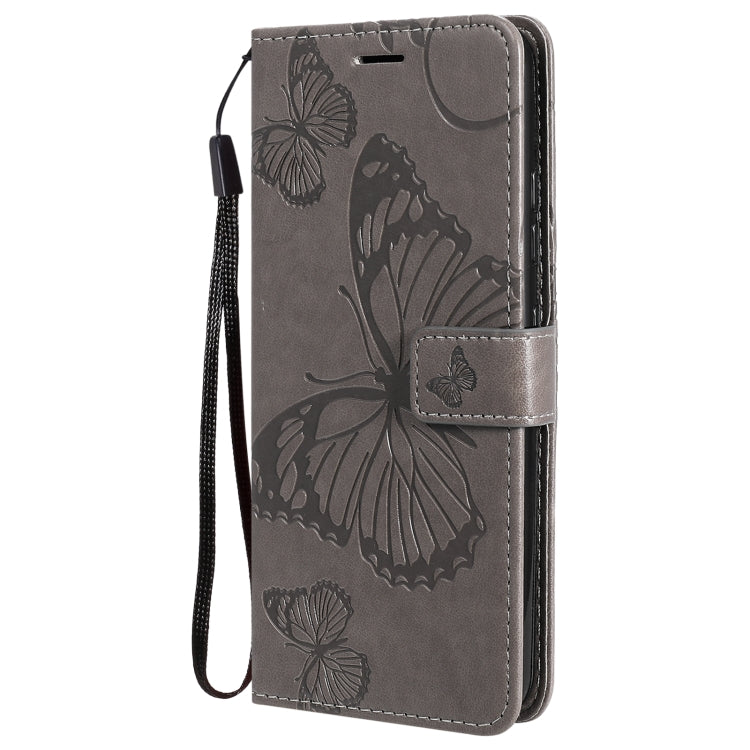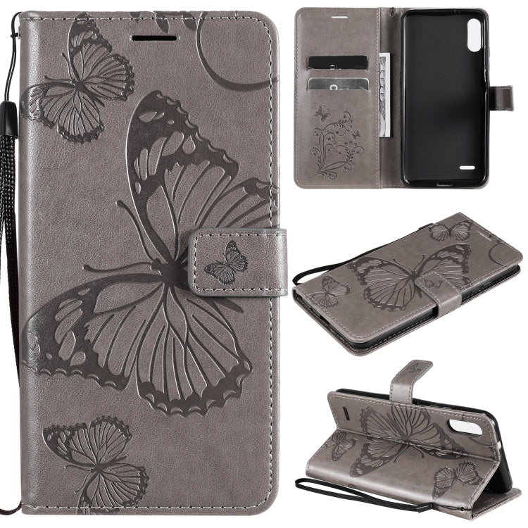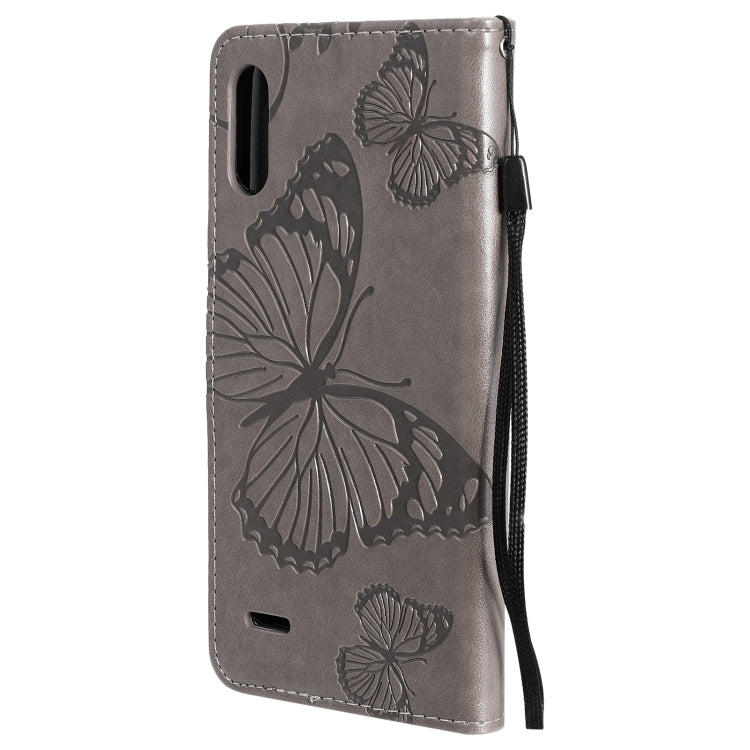 Funda de cuero horizontal para LG K22 / K22 Plus con patrón 3D de mariposas, tarjetero y billetera (Gris)