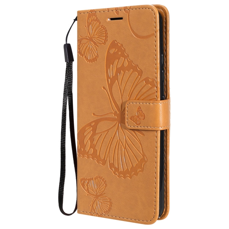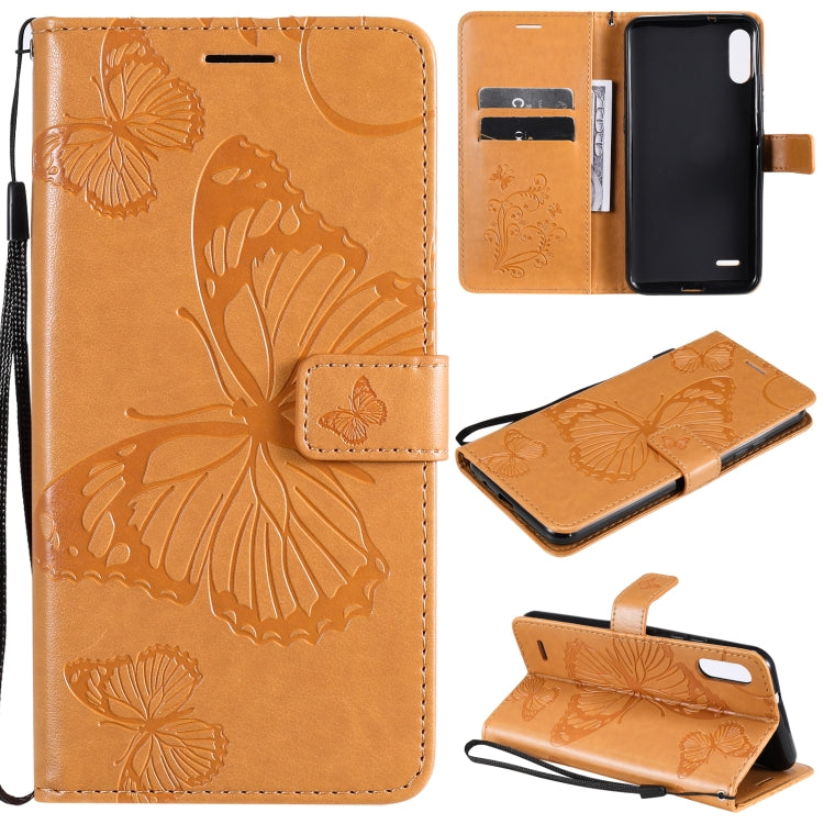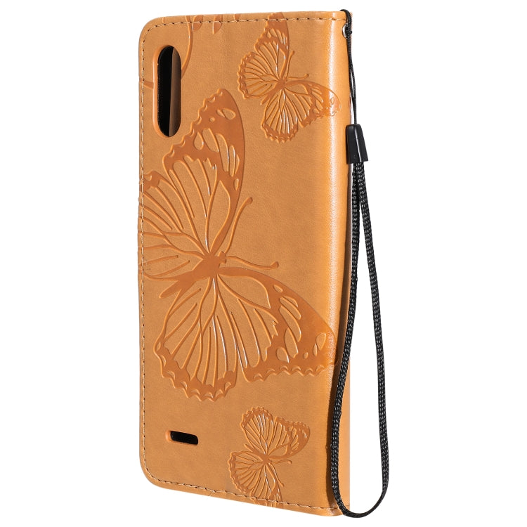 Funda de cuero con patrón 3D mariposas para LG K22 y K22 Plus con tarjetero y billetera (Amarillo)