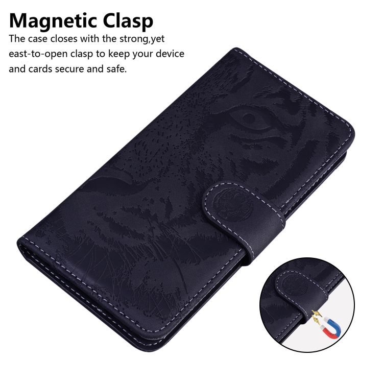 Funda para Tecno Spark 7 Pro con patrón de tigre en relieve, tapa horizontal, cuero (Negro)