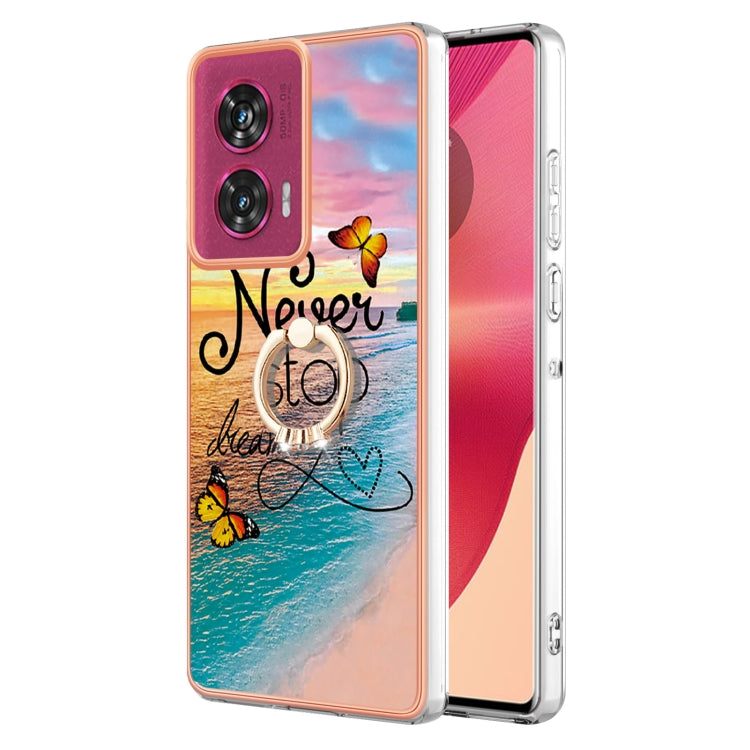 Funda TPU con Patrón Galvanoplastia y Soporte Anillo para Motorola Edge 50 Fusion (Mariposa Persiguiendo Sueños)
