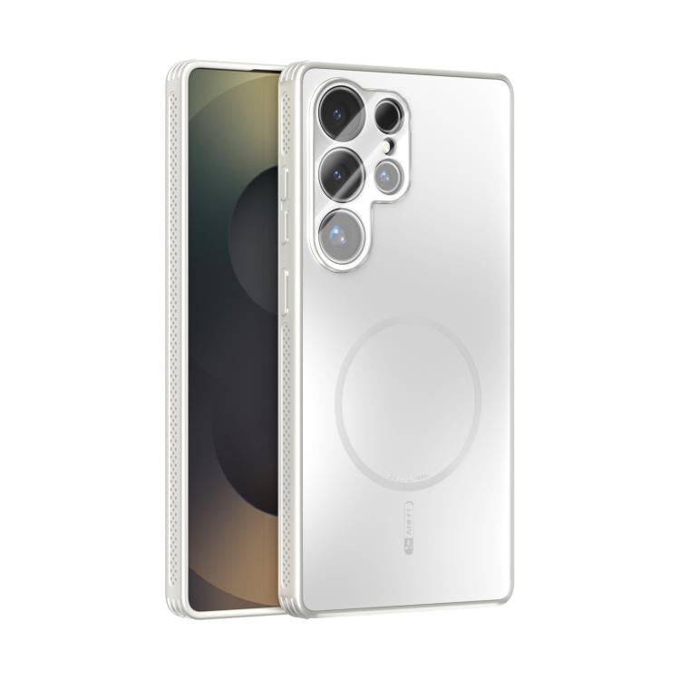 Funda ABEEL MagSafe esmerilada con disipación de calor y película para lente para Samsung Galaxy S25 Ultra 5G (blanca)
