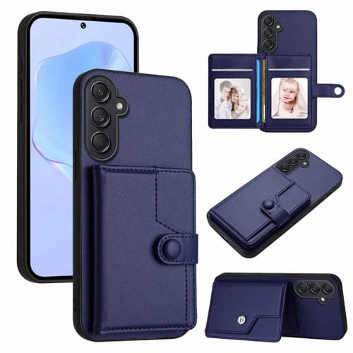 Funda Antirrobo RFID Samsung Galaxy M55/C55 5G con Botón y Tarjetero (Azul)