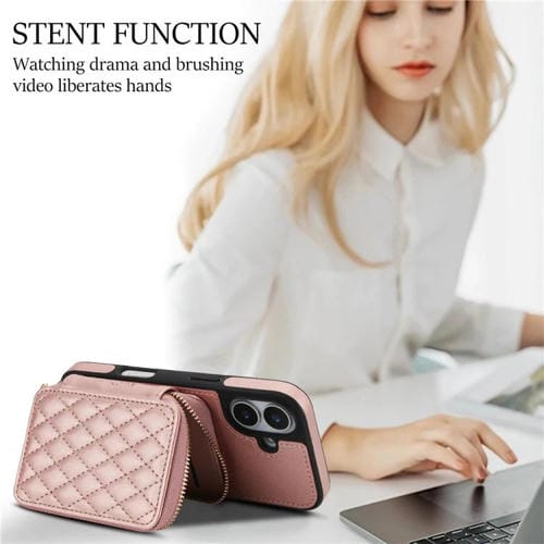 Funda AwQuer con cierre cruzado y parte trasera de cuero romboidal para iPhone 17 (oro rosa)