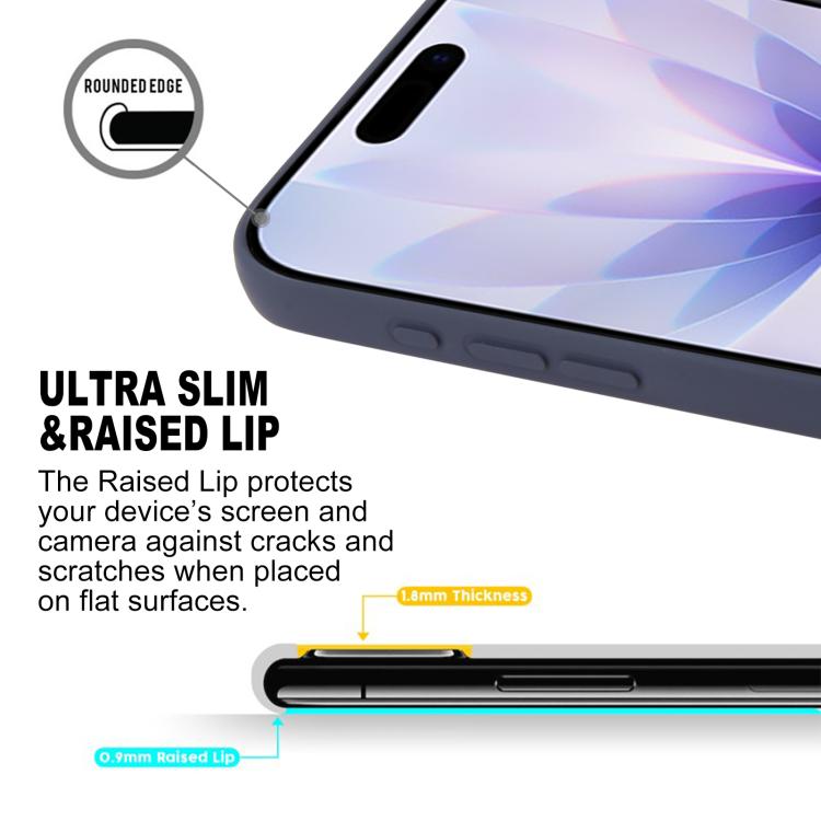 3. Protección de pantalla y cámara: El borde elevado alrededor de la pantalla y la lente de la cámara protege contra arañazos.