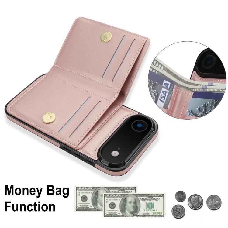 2. Práctico tarjetero: La ranura para tarjetas y el compartimento para efectivo permiten guardar tarjetas de crédito, efectivo o billetes pequeños necesarios para el uso diario.