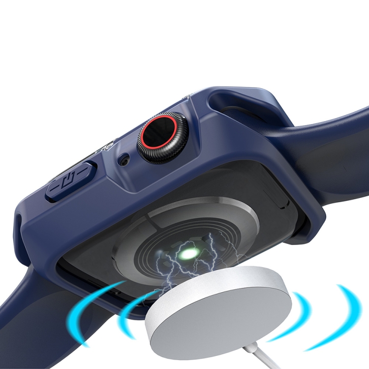 Funda Armadura Transparente Dos Colores para Apple Watch Series 6 SE 5 4 44mm (Azul)