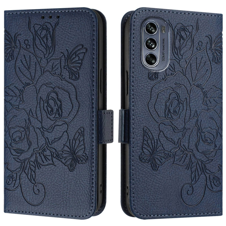 Funda de Cuero Antirrobo con Rfid para Motorola Moto G62 5G Global (Azul Oscuro)