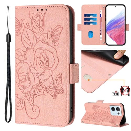 Funda de Cuero Antirrobo con Rfid y Relieve Rosa para Oppo Reno8 5G (Rosa)