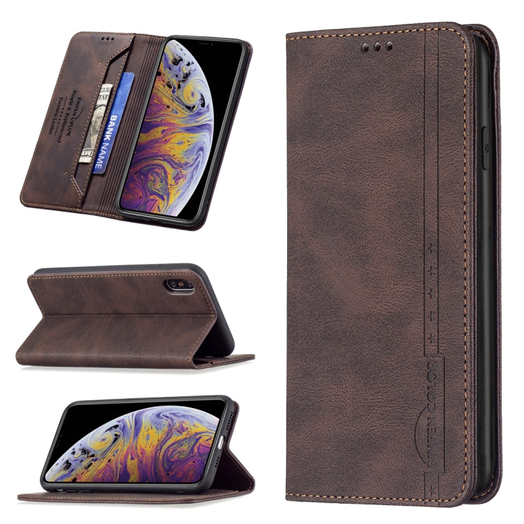 Funda de Cuero Antirrobo Bloqueo RFID Magnético Soporte Billetera para iPhone Xs Max (Brown)
