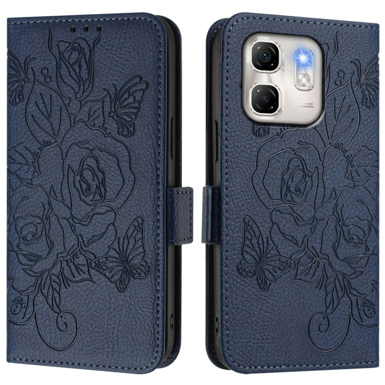 Funda de Cuero Antirrobo RFID con Relieve para Infinix Hot 50I 5G y Smart 9 4G (Azul Oscuro)