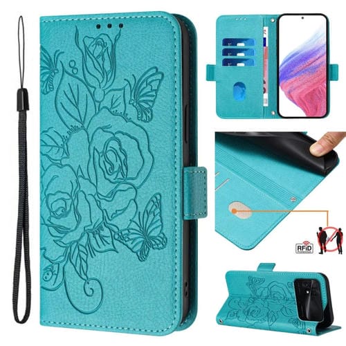Funda de Cuero Antirrobo Rfid con Relieve Rosa para Redmi 10C/Xiaomi Poco C40 (Azul Claro)