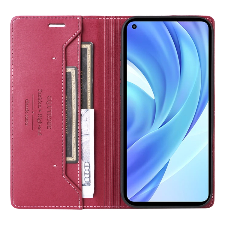 Funda de Cuero Antirrobo Rfid Gqutrobe G01 para Xiaomi Mi 11 Lite (Rojo)