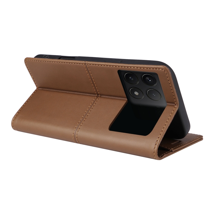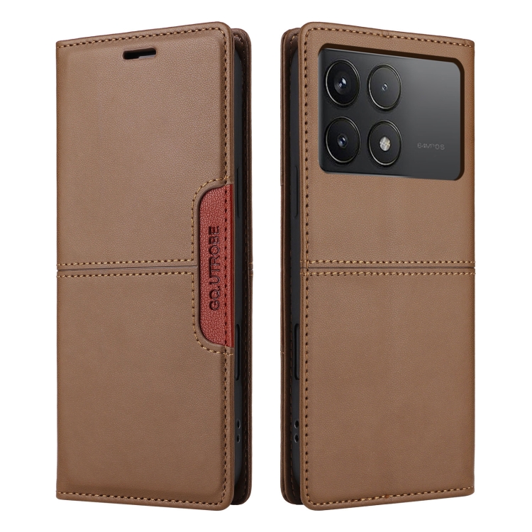 Funda de Cuero Antirrobo Rfid Gqutrobe G01 para Xiaomi Poco F6 Pro (Marrón)