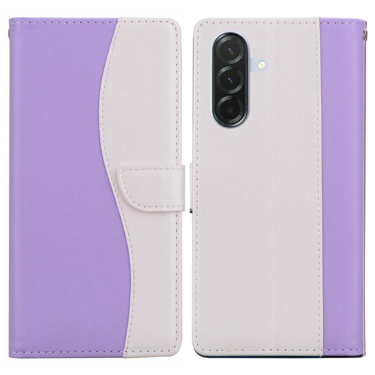 Funda de cuero bicolor con relieve para Samsung Galaxy A36 5G/A56 5G (morado y blanco)