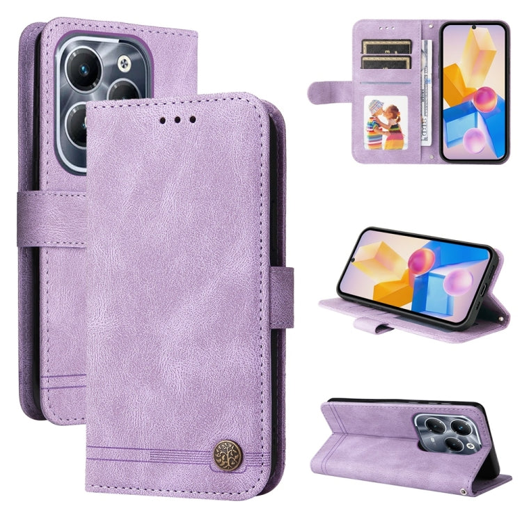 Funda de Cuero con Botones de Metal y Diseño Árbol de la Vida para Infinix Hot 40 y Hot 40 Pro (Morado)