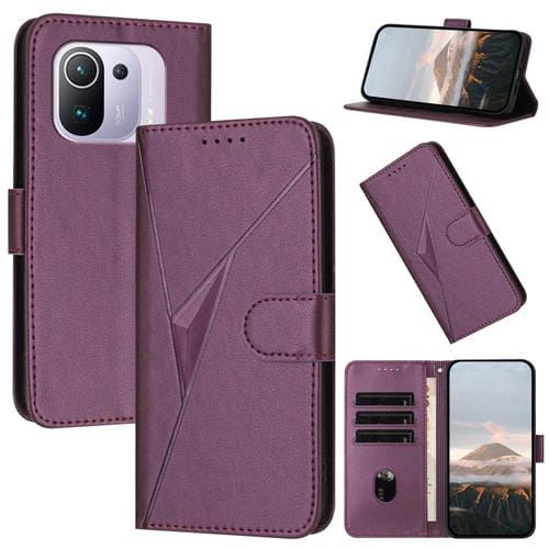 Funda de Cuero con Hebilla y Diseño Triangular para Xiaomi Mi 11 Pro (Morado Oscuro)