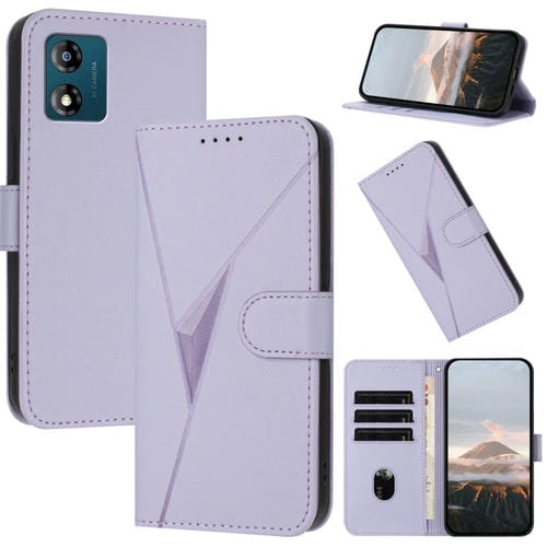 Funda de Cuero Motorola Moto E13 con Cierre de Hebilla y Diseño Triangular (Morado Claro)