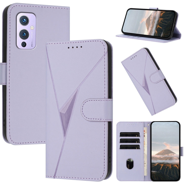 Funda de Cuero OnePlus 9 con Cierre de Hebilla y Diseño Triangular (Morado Claro)