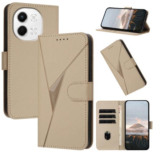 Funda de Cuero para Tecno Pova 6 Neo 5G y Spark 30 5G con Cierre de Hebilla y Diseño Triangular (Dorada)