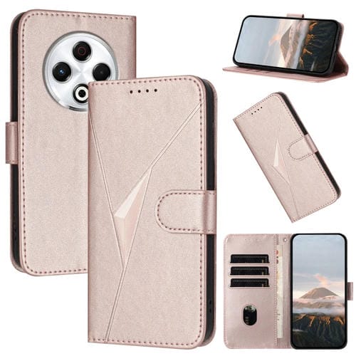 Funda de Cuero para Tecno Spark 30 4G con Cierre de Hebilla y Diseño Triangular (Oro Rosa)