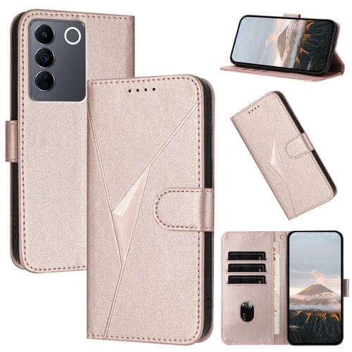 Funda de Cuero con Hebilla y Diseño Triangular para Vivo V27 (Oro Rosa)