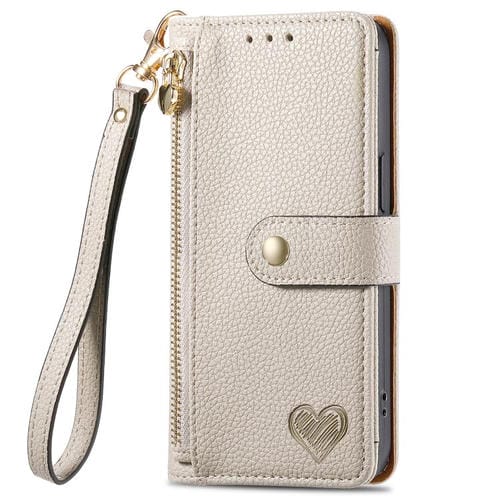 Funda de cuero con cordón y cremallera Love para iPhone 17 (gris)
