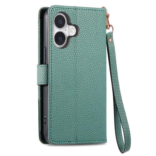 Funda de cuero con cordón y cremallera Love para iPhone 17 (verde)