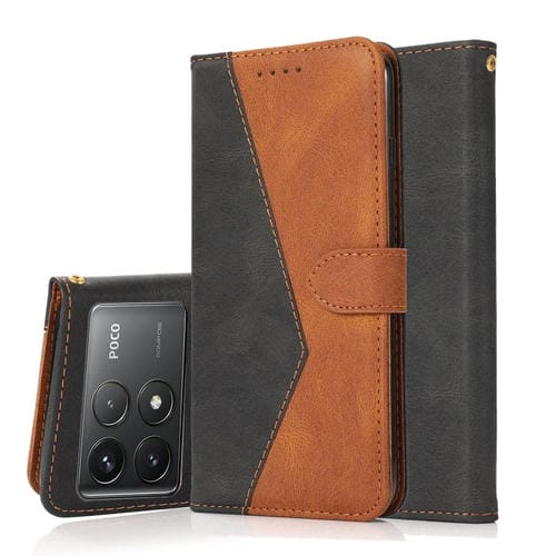 Funda de Cuero con Costuras de Dos Colores para Teléfono Xiaomi Poco F6 Pro (Negro y Marrón)