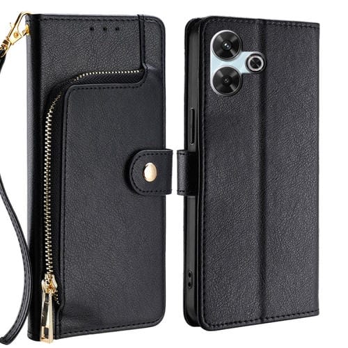 Funda de Cuero con Cremallera para Redmi 13 4G (Negra)