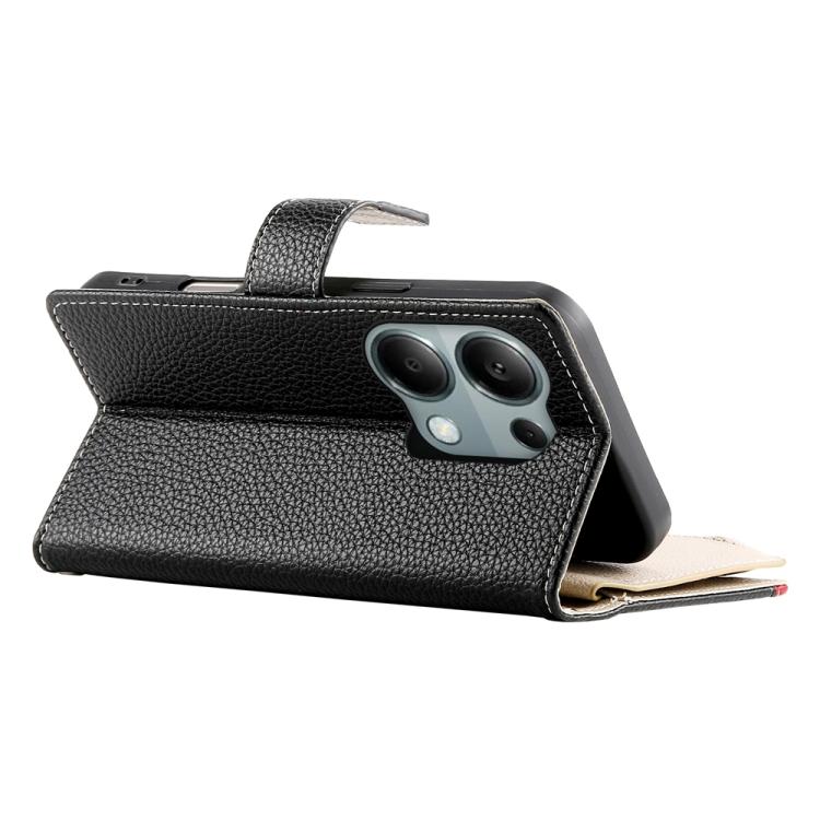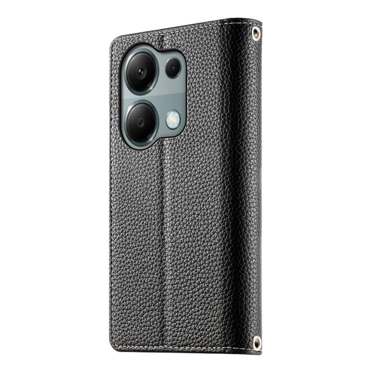 Funda de cuero con cremallera para Redmi Note 13 Pro 4G / Poco M6 Pro, con costuras, para múltiples tarjetas y correa corta (negra)