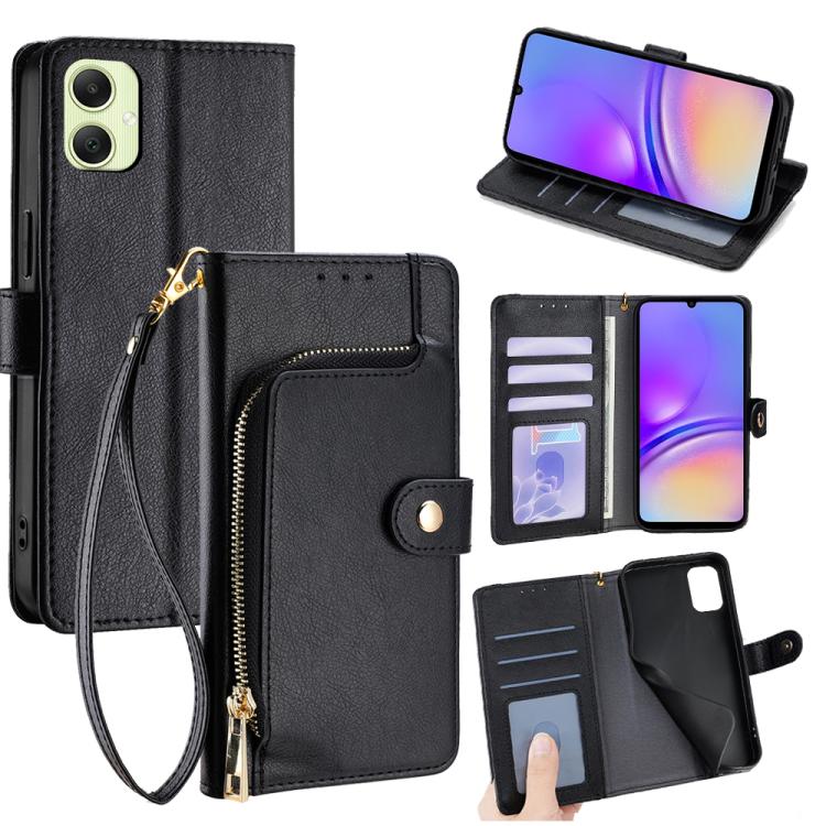 Funda de cuero con cremallera para Samsung Galaxy A05 4G (negra)