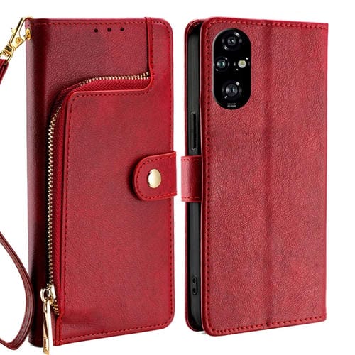 Funda de Cuero con Cremallera para Teléfono Honor 200 Pro 5G (Rojo)