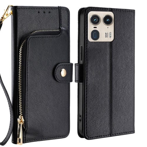 Funda de Cuero con Cremallera para Motorola Edge 50 Ultra (Negro)