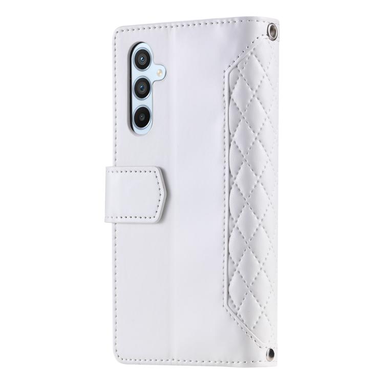 Funda de cuero con cremallera y cordón para Samsung Galaxy A17 5G (textura de cuadrícula, blanco)