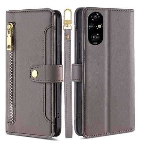 Funda de Cuero con Cremallera y Diseño Cruzado Textura de Oveja para Honor 200 Pro 5G (Gris)