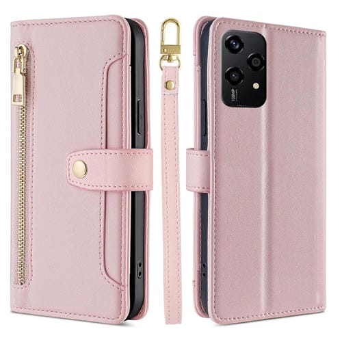 Funda de Cuero con Cremallera para Honor 200 Lite 5G (Rosa) con Diseño de Ovejas