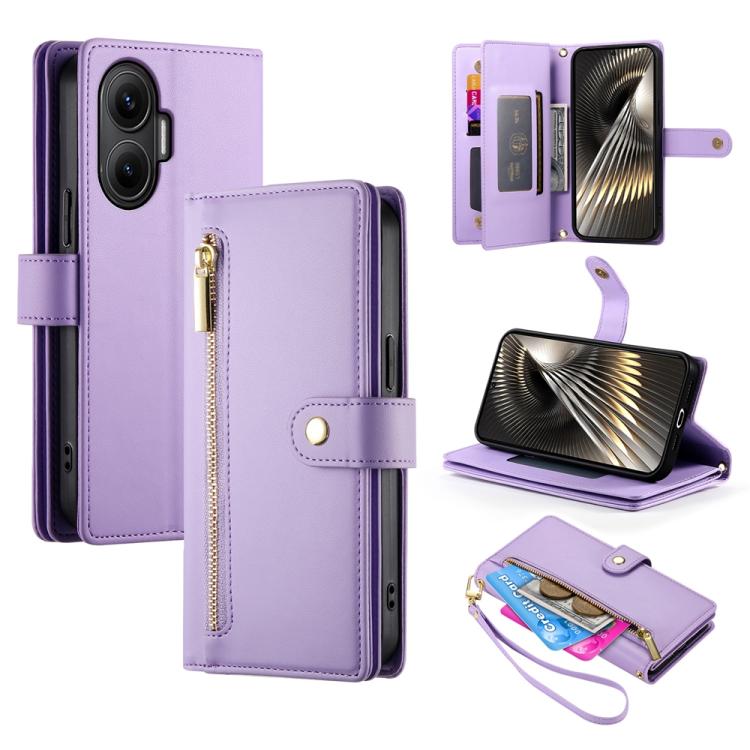 Funda de cuero con cremallera y ranura para tarjetas para Redmi Turbo 4 Pro y Xiaomi Poco F7 (morado)
