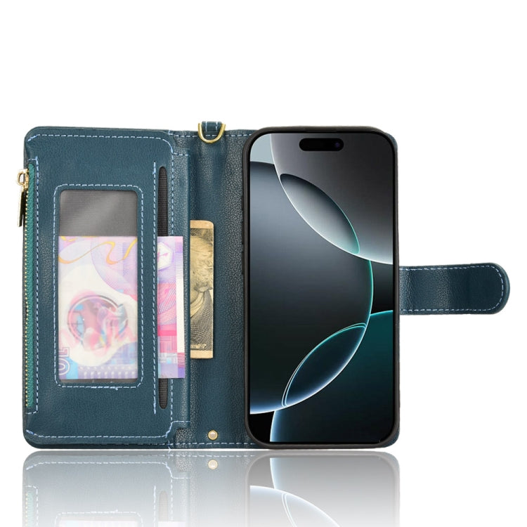 Funda de Cuero con Cremallera y Textura de Lichi para iPhone 16 Pro (Verde)