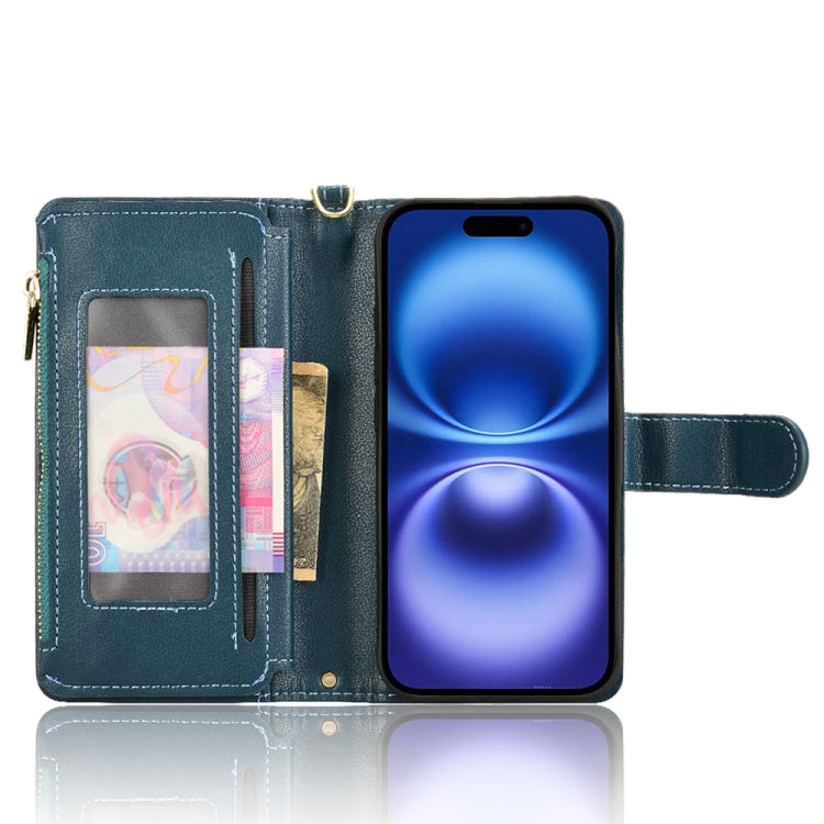 Funda de Cuero con Cremallera y Textura de Lichi para iPhone 16 (Verde)