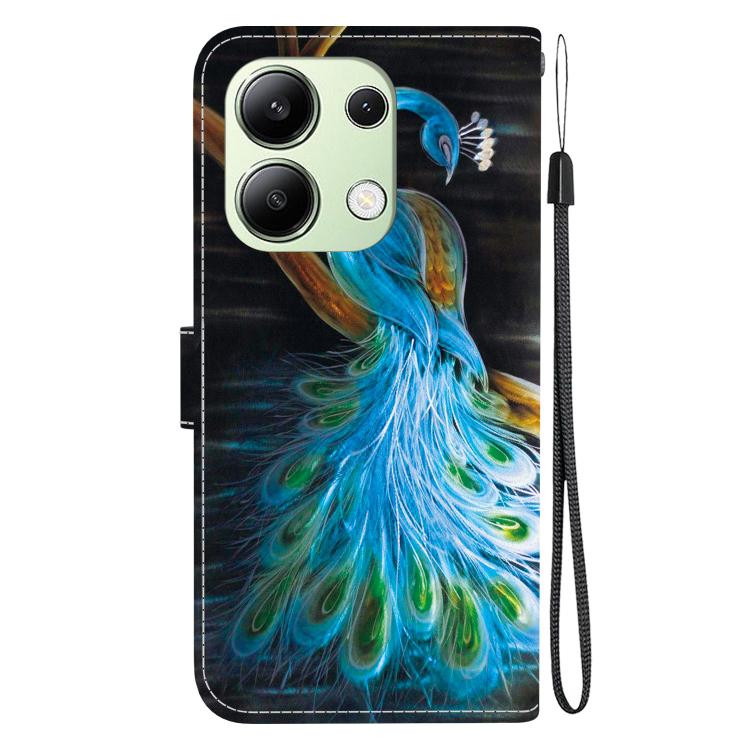 Funda de Cuero con Dibujo de Colores y Textura de Cristal Global para Redmi Note 13 4G (Pavo Real)
