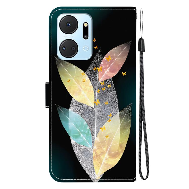 Funda de Cuero para Honor X7A con Dibujo de Colores y Textura de Cristal (Hojas de Colores)